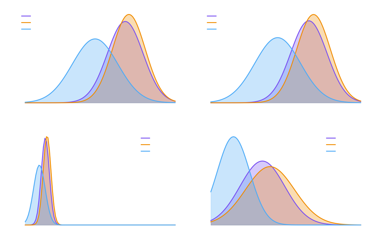 Feature distributions for the first 4 features.